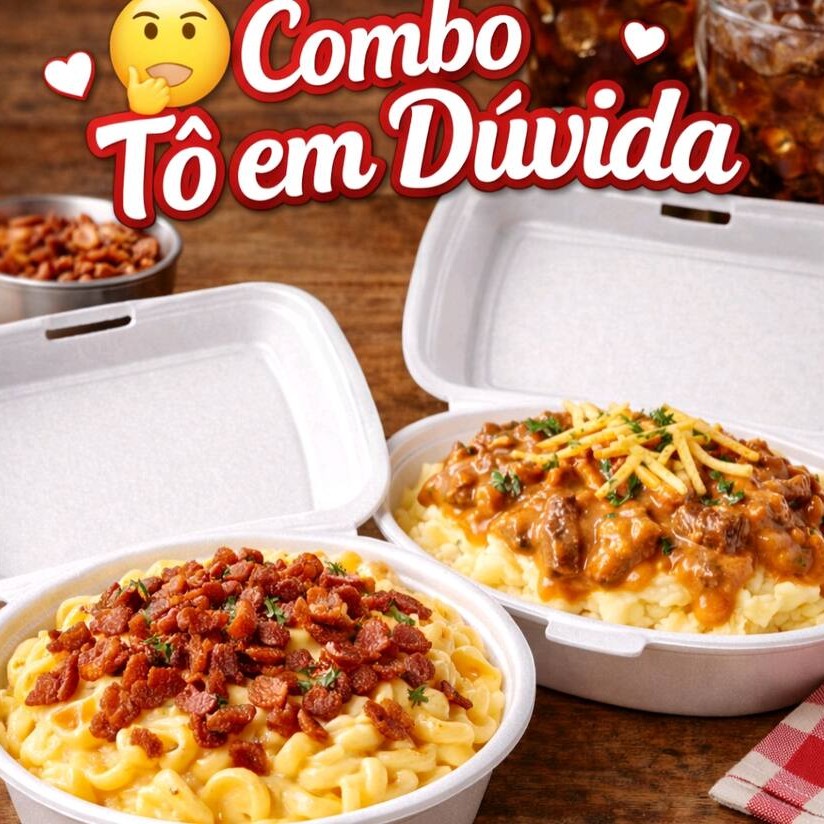️ Combo Tô em Dúvida Não conseguiu escolher? A gente resolveu por você Esse combo vem com 1 Mac & Cheese super cremoso, cheio de queijo, e 1 batata recheada cremosa com strogonoff de carne, bem servida e saborosa.Dois pratos queridinhos, zero arrependimento. Ideal pra dividir… ou ficar com tudo