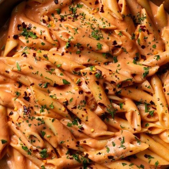 Macarrão Penne servido com molho sugo tradicional, saboroso e caseiro, na porção de 500g.