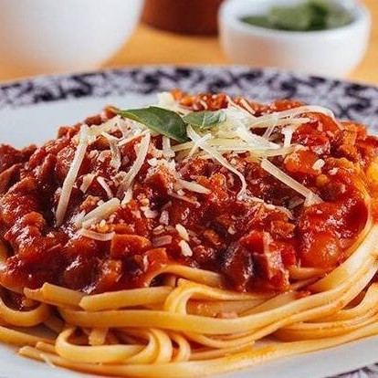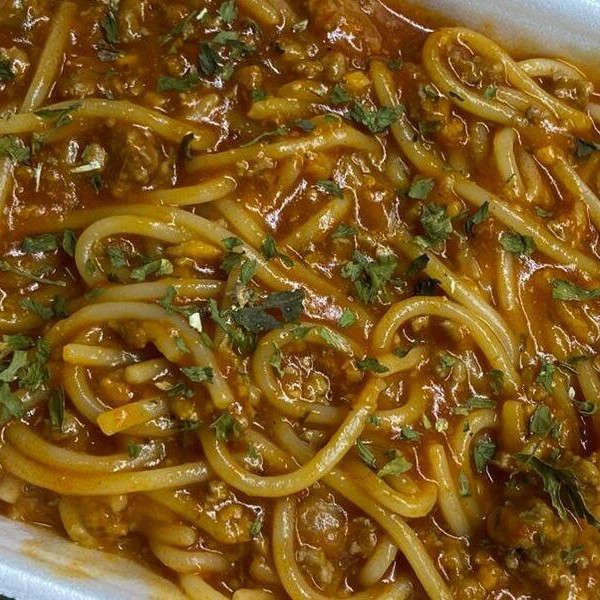 Cozido na medida certa, servido com molho à bolonhesa de carne, temperos especiais e azeite, garantindo sabor.