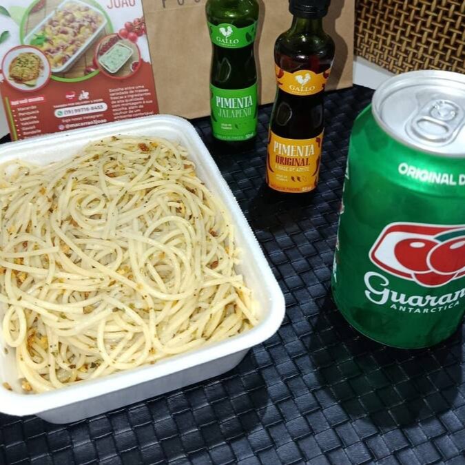 Macarrão espaguete, refogado no azeite com alho e óleo e orégano.