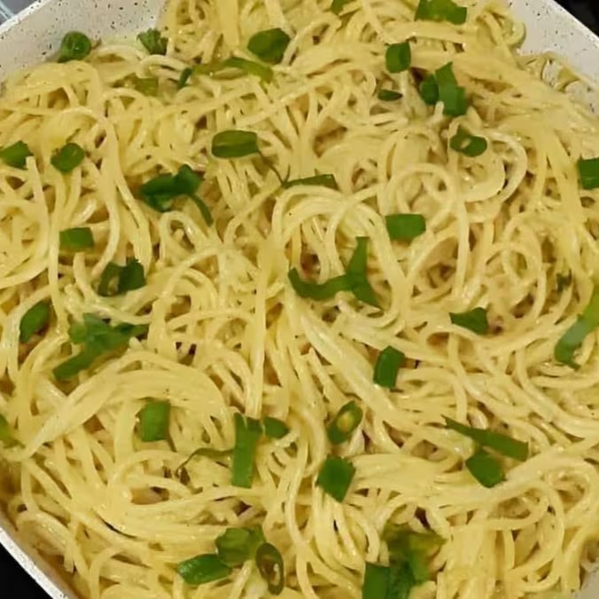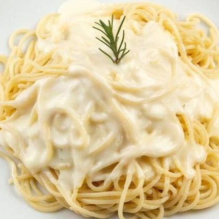 Macarrão Espaguete servido com molho branco, preparado com ingredientes frescos e temperos especiais. Porção de 500g.