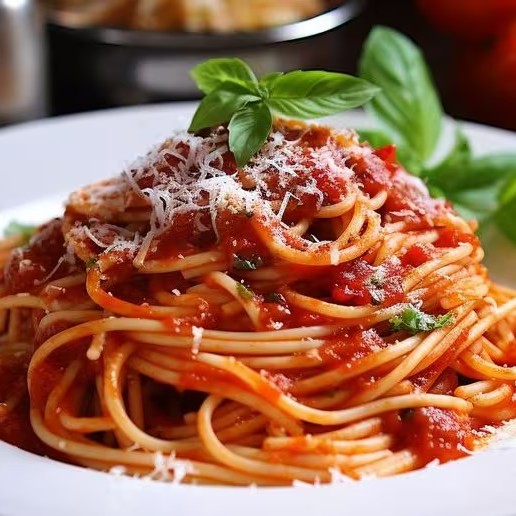 Espaguete com molho sugo caseiro, preparado com tomates selecionados e temperos naturais, servido com uma Coca-Cola 350ml bem gelada.