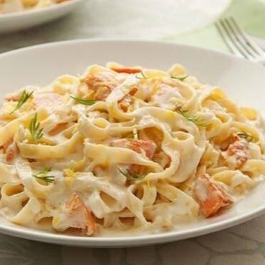 Talharim fresco e saboroso, servido com molho branco, temperos especiais e toque de manteiga, garantindo uma refeição.