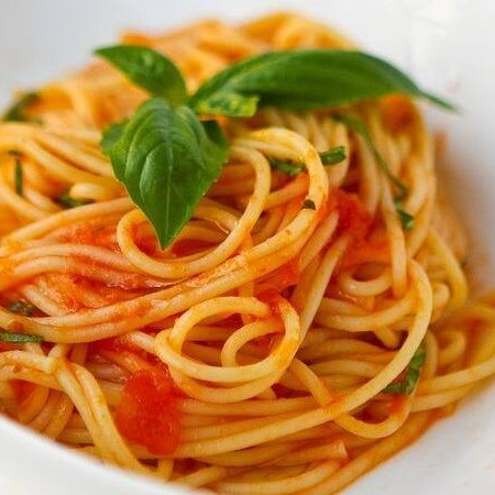 Macarrão Espaguete servido com molho sugo, temperado na medida certa para realçar o sabor. Porção de 500g.