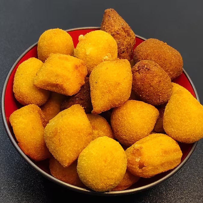 Combo com 50 mini salgados fritos sabores sortidos, perfeitamente dourados e crocantes. Um prato ideal para compartilhar em qualquer ocasião.!