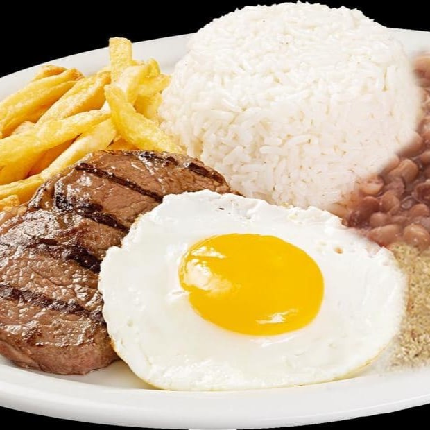 Contrafilé grelhado, suculento e no ponto, com ovo frito por cima, uma combinação tradicional e saborosa. Para quem busca uma refeição completa e com gostinho de comida caseira. Acompanha arroz, feijão e fritas.