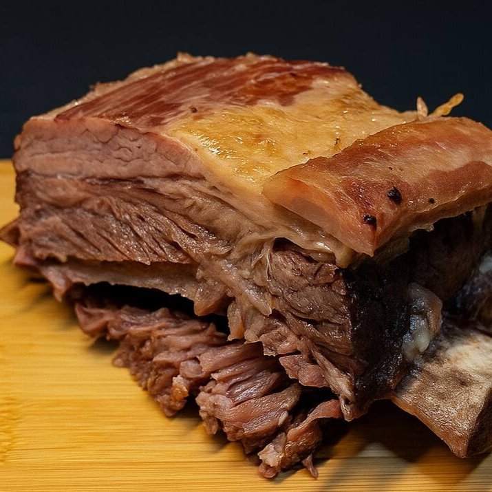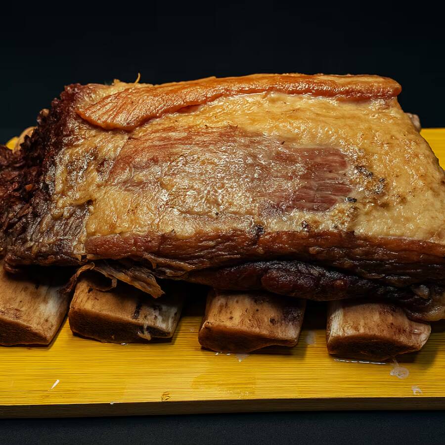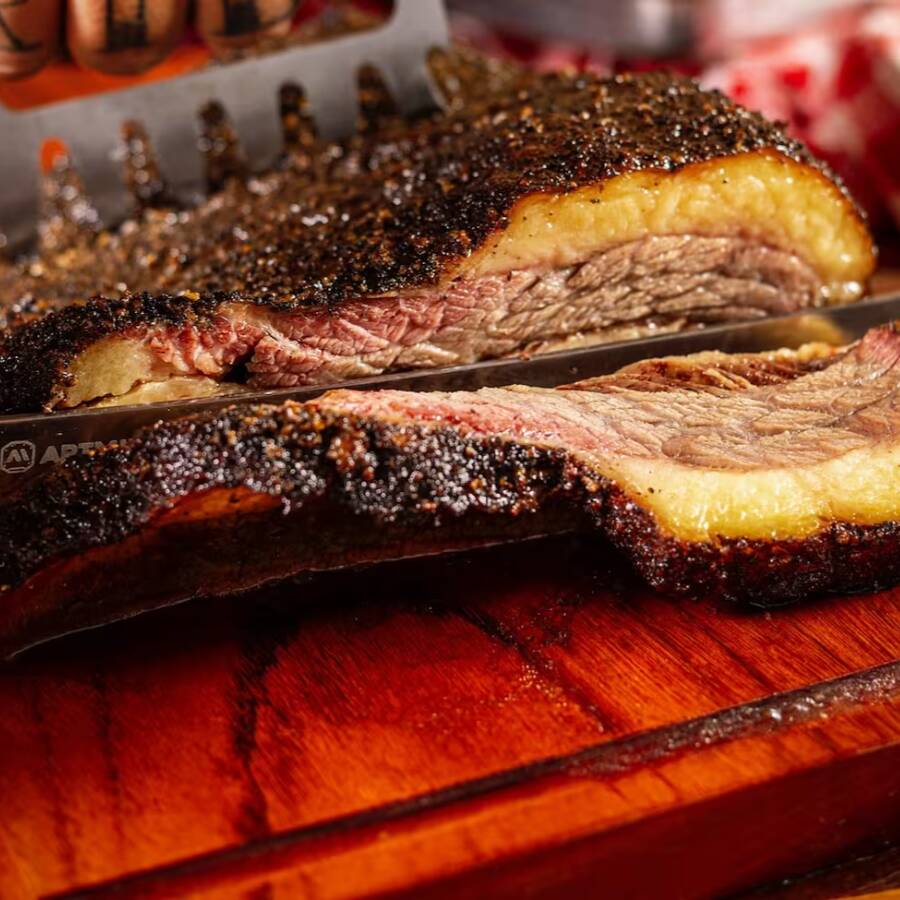 Brisket (ponta de peito bovino)) assado lentamente até desmanchar no molho do próprio cozimento. Uma refeição generosa, ideal para quem quer matar a fome com prazer e sustância.