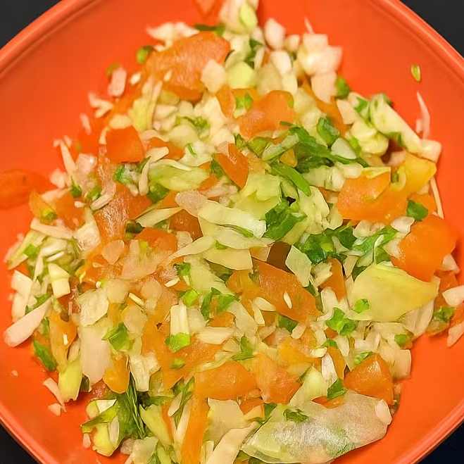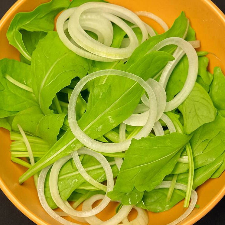 500 ml de Porção de salada magnífica de rúcula e cebola com tempero especial da casa.