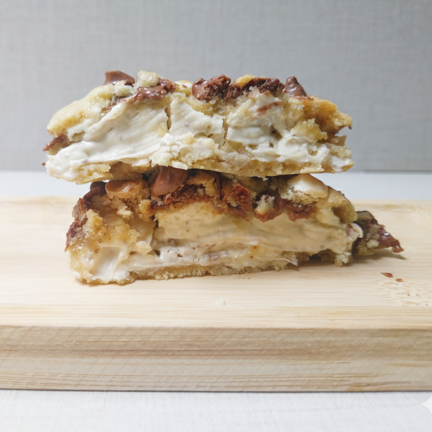 Cookies de baunilha tradicional com recheio de kinder bueno e avelã