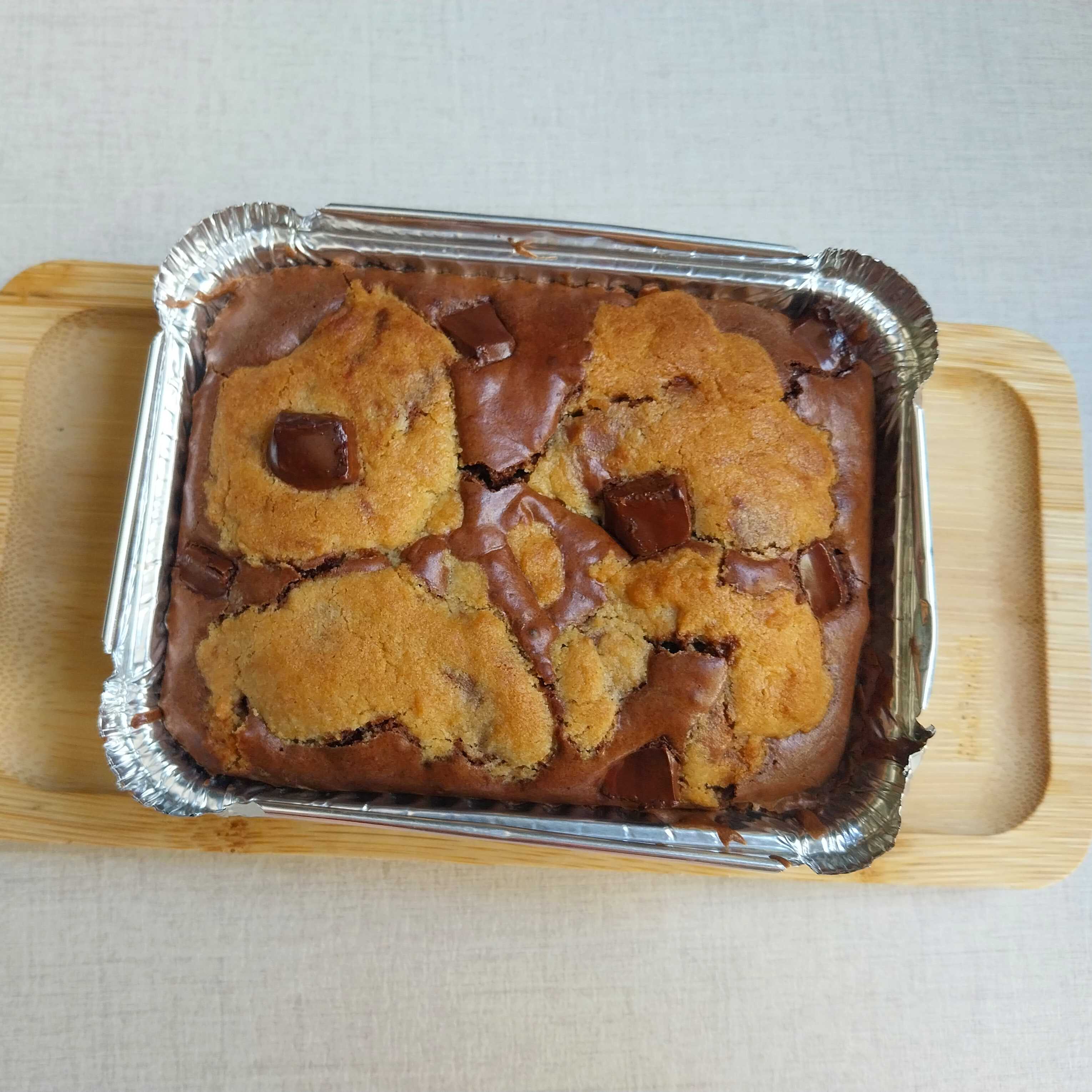 Nosso delicioso brownie feito com chocolate meio amargo e nosso cookie com gotas de chocolate ao leite, a combinação perfeita