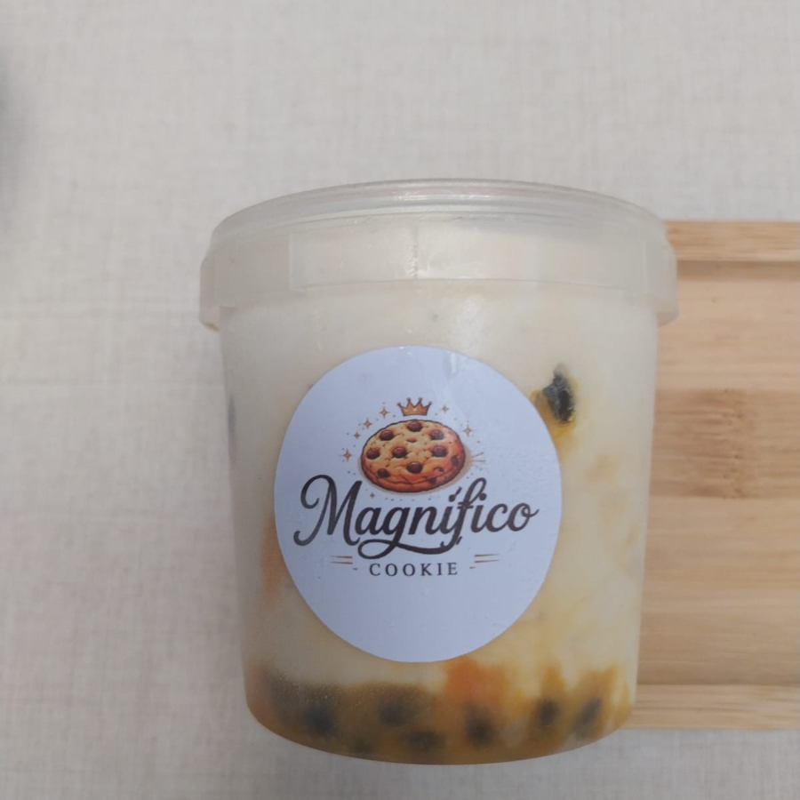 Sorvete feito artesanalmente com a fruta do maracujá, muito cremoso e sabor intenso do fruta, embalagem de 220ml