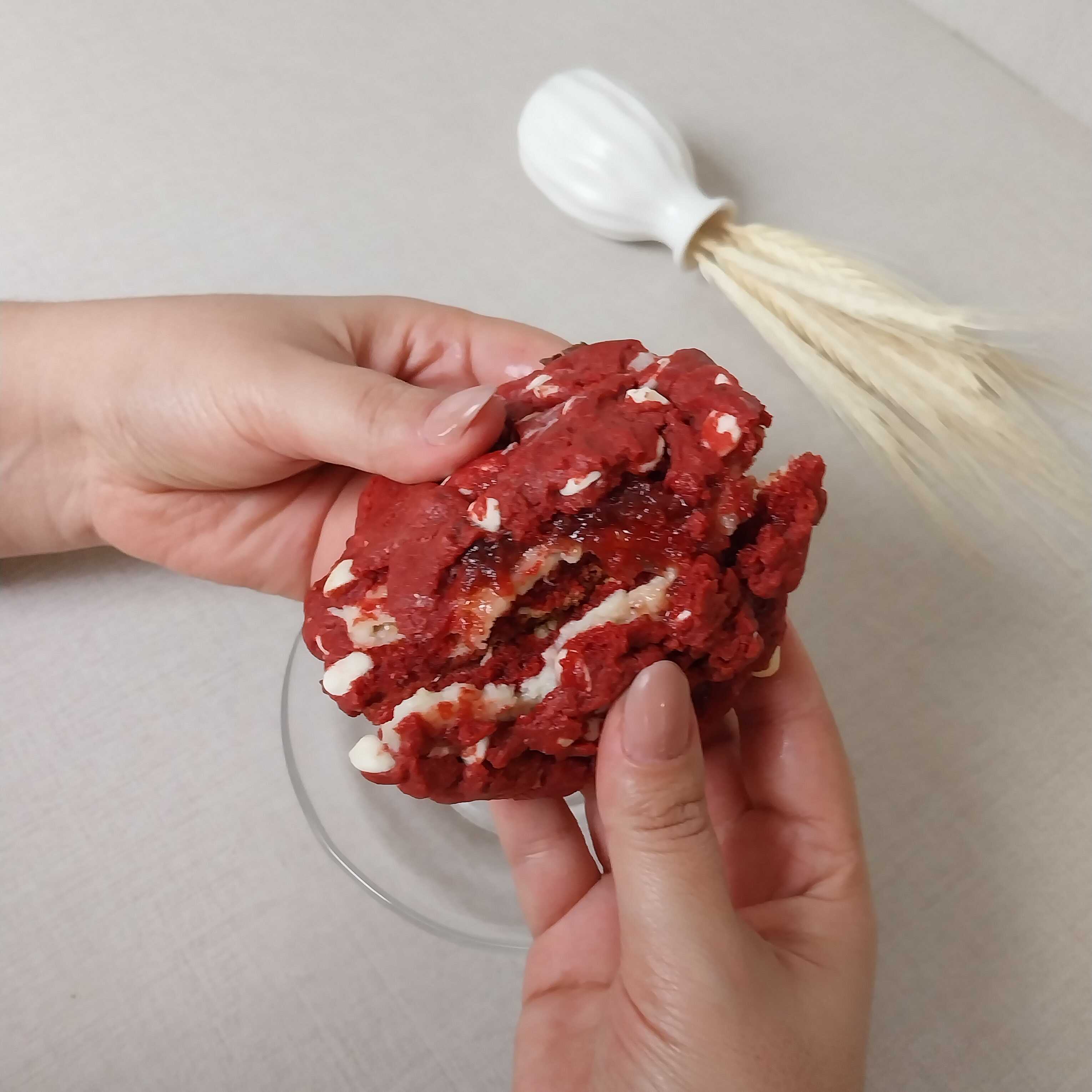 Cookies de baunilha vermelha e recheio de cream cheese e geleia de morango