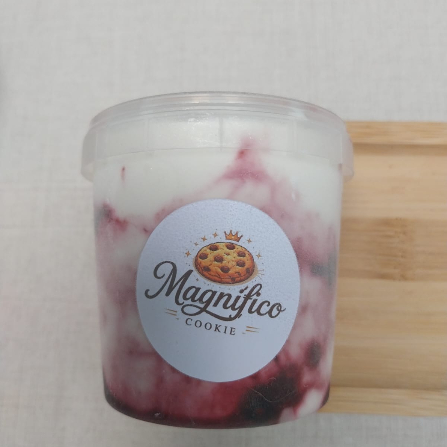 Sorvete feito artesanalmente, com yorgute e geleia de frutas vermelhas, contem 220ml