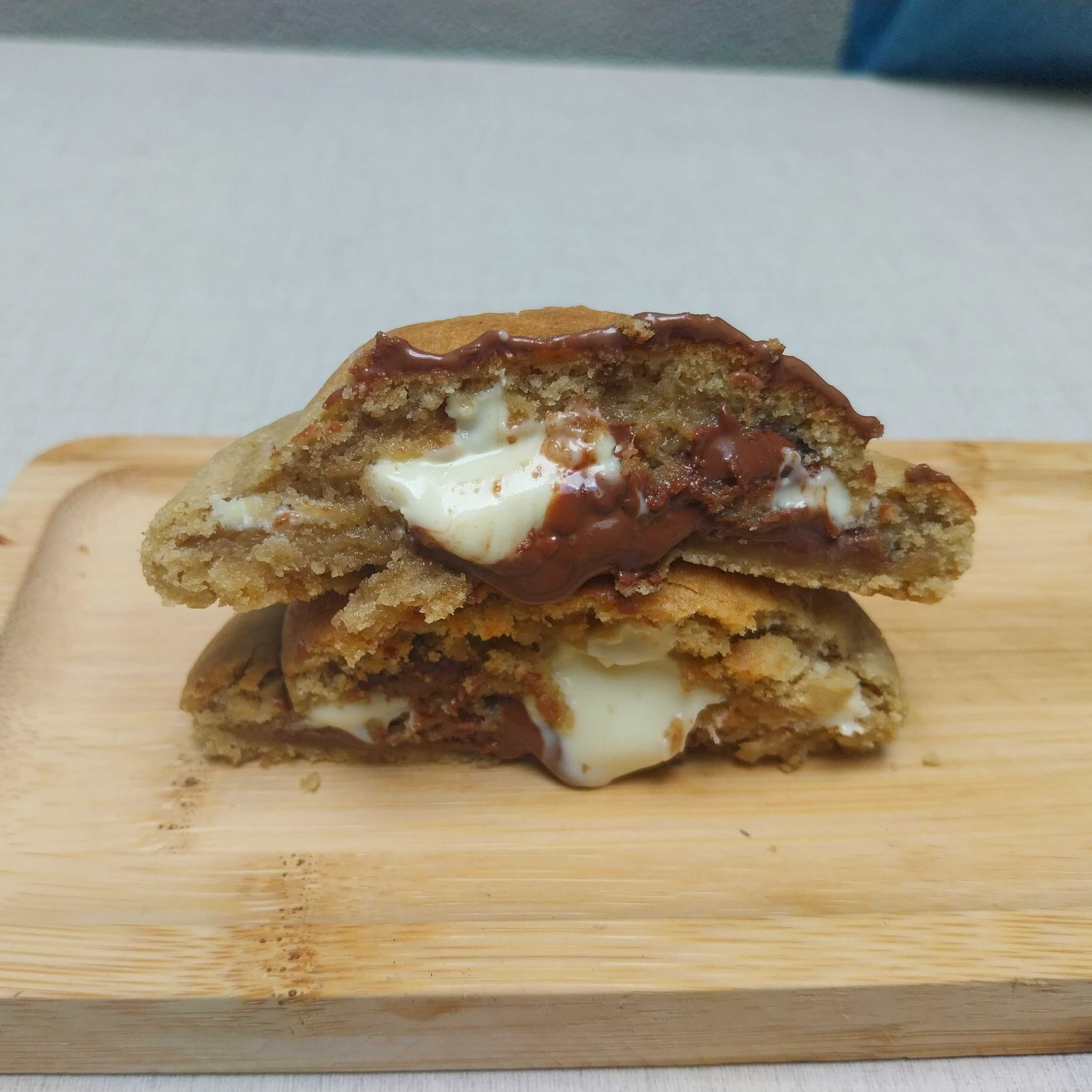 Cookies de banulha tradicional com recheio de creme de ninho com nutella.