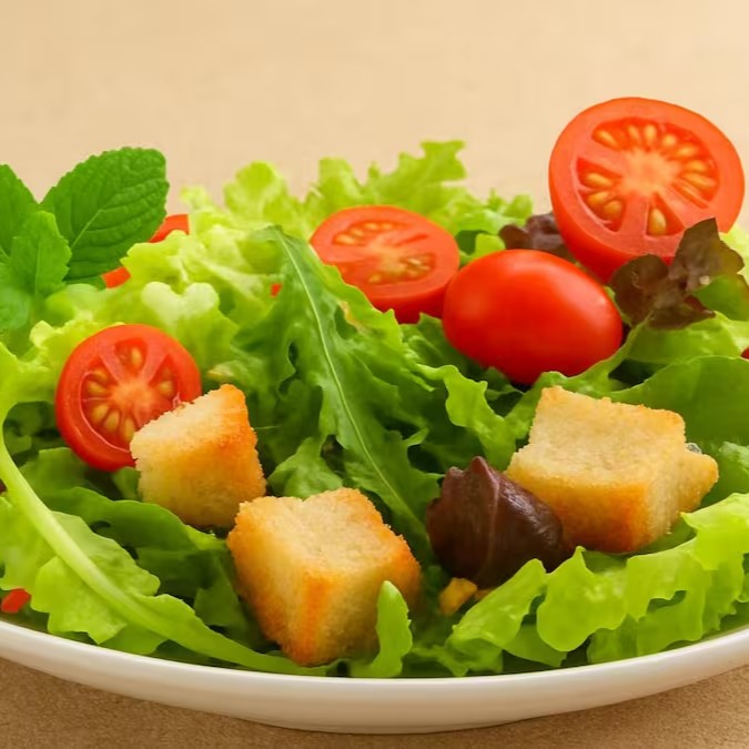 150g de mix de folhas, tomate, zaatar e croutons de pão sírio