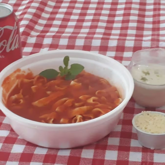 Escolha 1 massa recheada, até 02 molhos, 1 sobremesa e 1 bebida