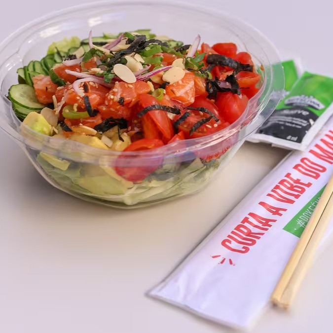 Monte seu poke + água de coco ou suco natural de 300ml geladinho.