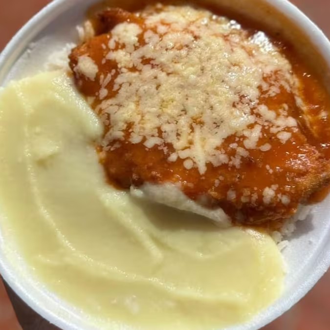Frango Parmegiana Com Purê + 12,99 Leve Outra Marmita