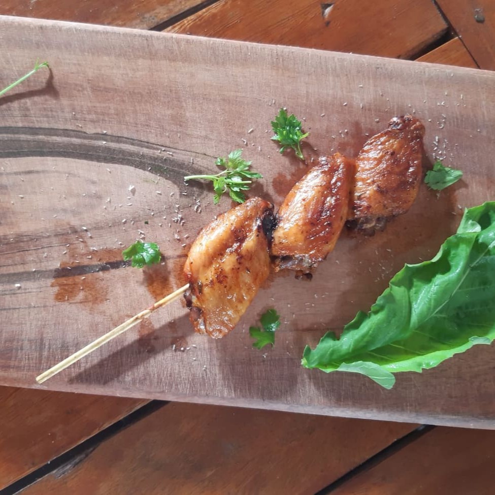 Aquele espetinho bem temperadinho e suculento de sobrecoxa....