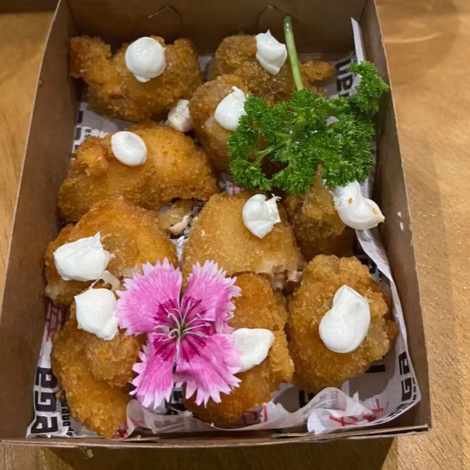 Salmão empanado e frito ( Salmão empanado, frito e batido feito o recheio do temaki)