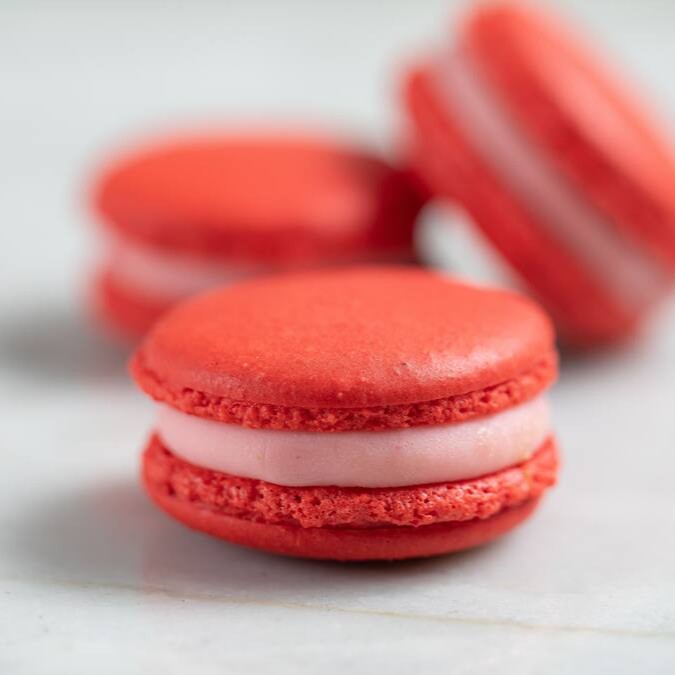 O tradicional macaron francês feito com farinha de amêndoas e delicioso recheio de frutas vermelhas.