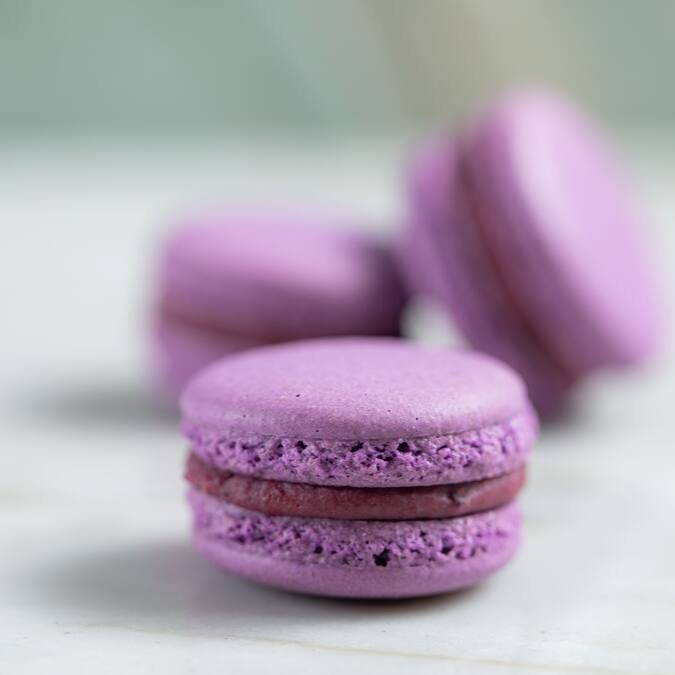O tradicional macaron francês feito com farinha de amêndoas e delicioso recheio de amoras.