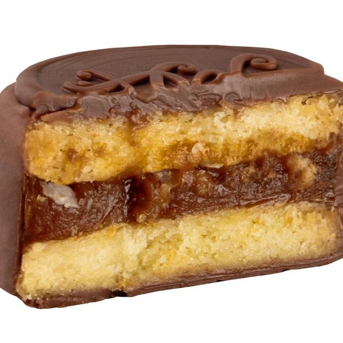 Massa Sablée com recheio de doce de leite argentino e cobertura de chocolate belga ao leite.