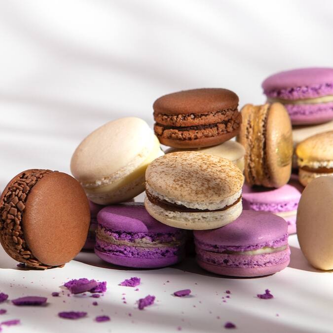 O tradicional macaron francês feito com farinha de amêndoas e delicioso recheio de camartelo com toque de flor de sal.