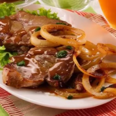 Marmita Caseira Pequena - Bisteca Suína Acebolada + Feijão (serve 1 Pessoa)