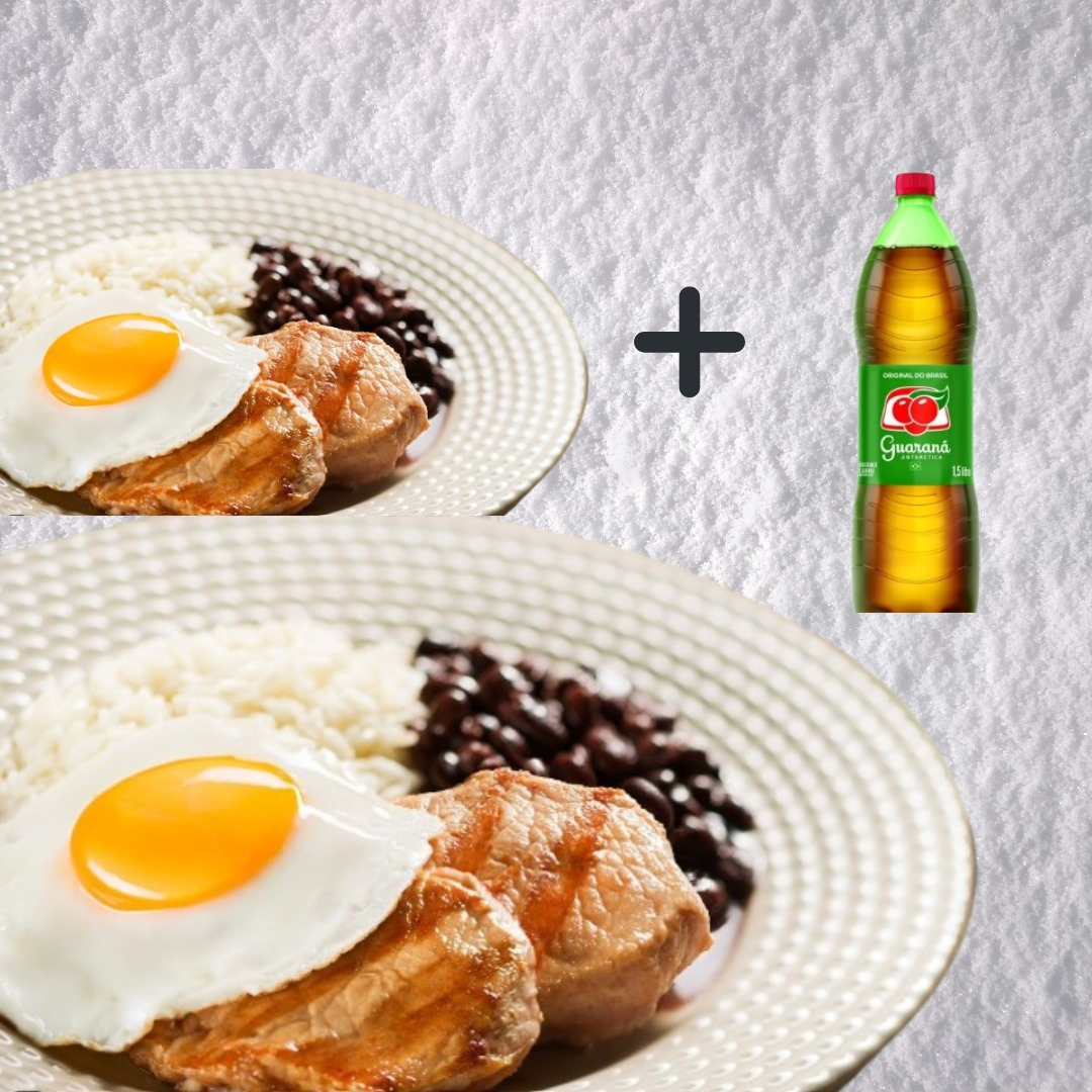 2 Marmitas Pequenas - Bisteca Suína C Ovo + Guaraná 1 Lt Grátis (serve + De 1 Pessoa)