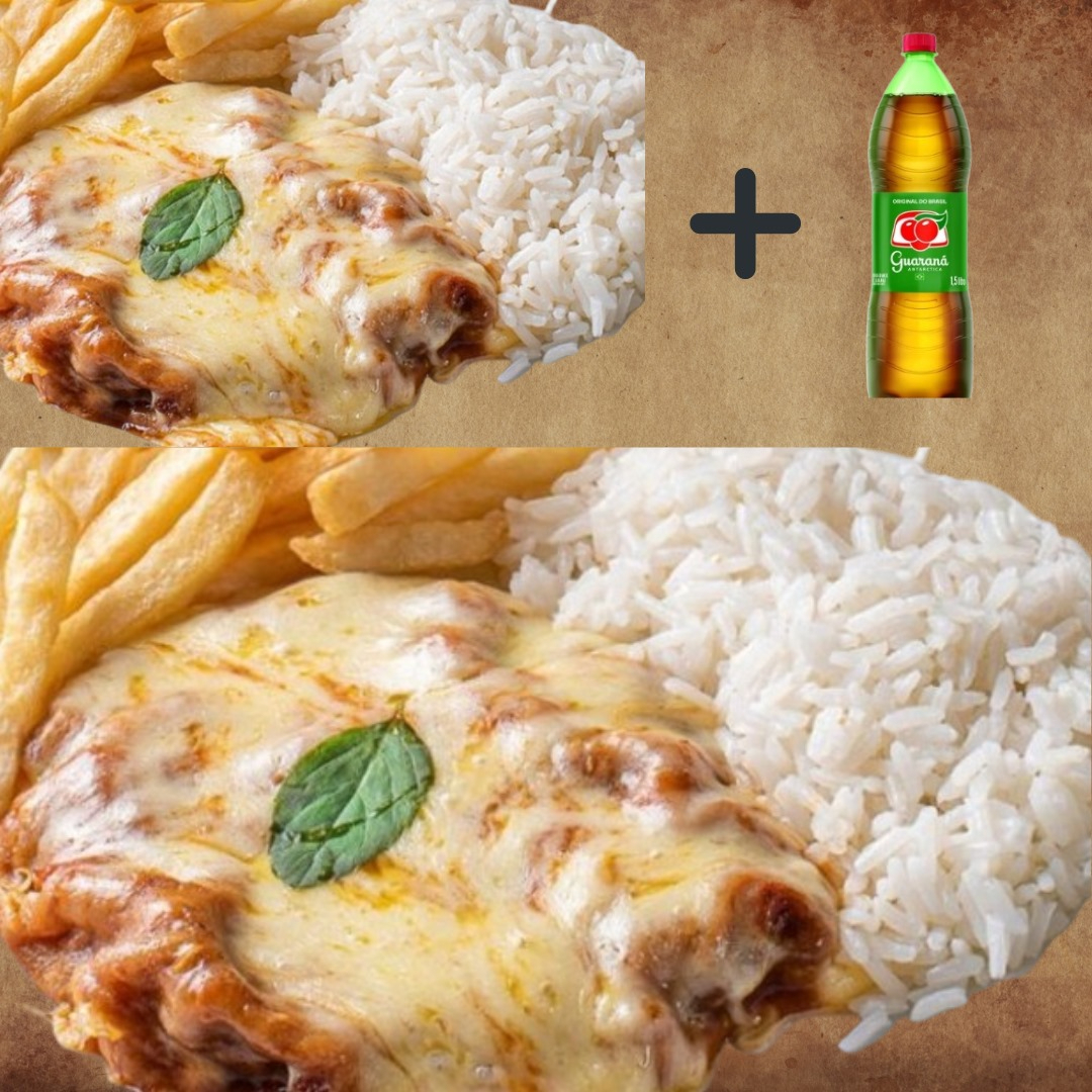 1 Marmita Pequena Do melhor Parmegiana de Frango da Região na promoção acompanha Guaraná 1 lt Gelado Grátis.
