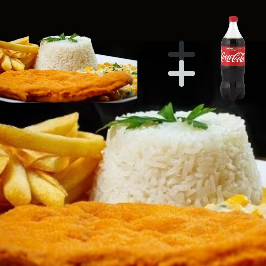 1 Marmita Do melhor Milanesa de Frango da Região na promoção acompanha Arroz e Feijão + Coca 600 Gelada Grátis.