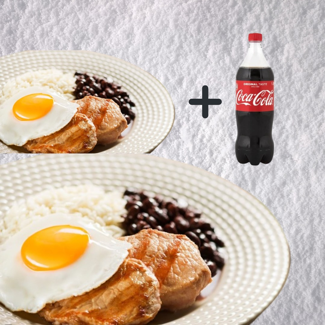 A mais pedida pequena no agora em dose dupla com Desconto. E o Melhor. Leva também Grátis 1 Coca Cola 1 Litro. Você não pode perder essa oportunidade de levar 2 marmitas de Bisteca de Porco Premium que acompanha Ovo frito.