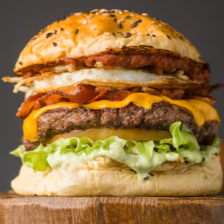 Maionese especial, Delicioso hamburguer angus de 160g, Queijo cheddar fatiado, bacon, ovo, Alface americana, Tomate, Pão de brioche.