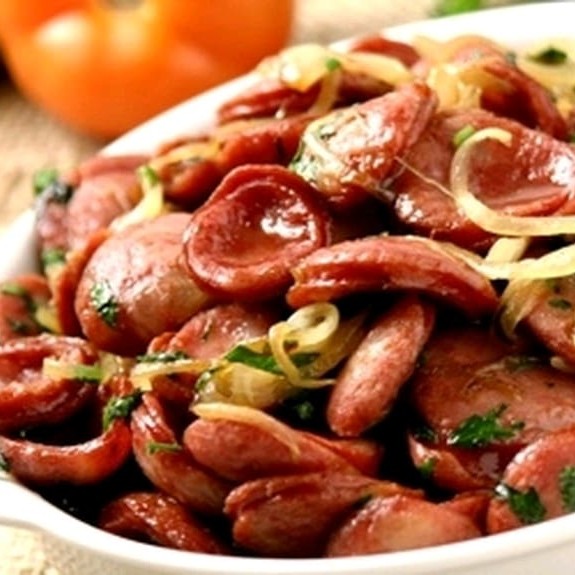 Calabresa Acebolada E Purê De Batata E Farofa + 18,90 Leve Outra Marmitex