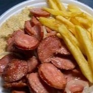 Calabresa Acebolada no ponto, servida com Arroz soltinho e Feijão Carioca temperado, aquela Batata Frita sequinha e crocante, e nossa saborosa Farofa.
