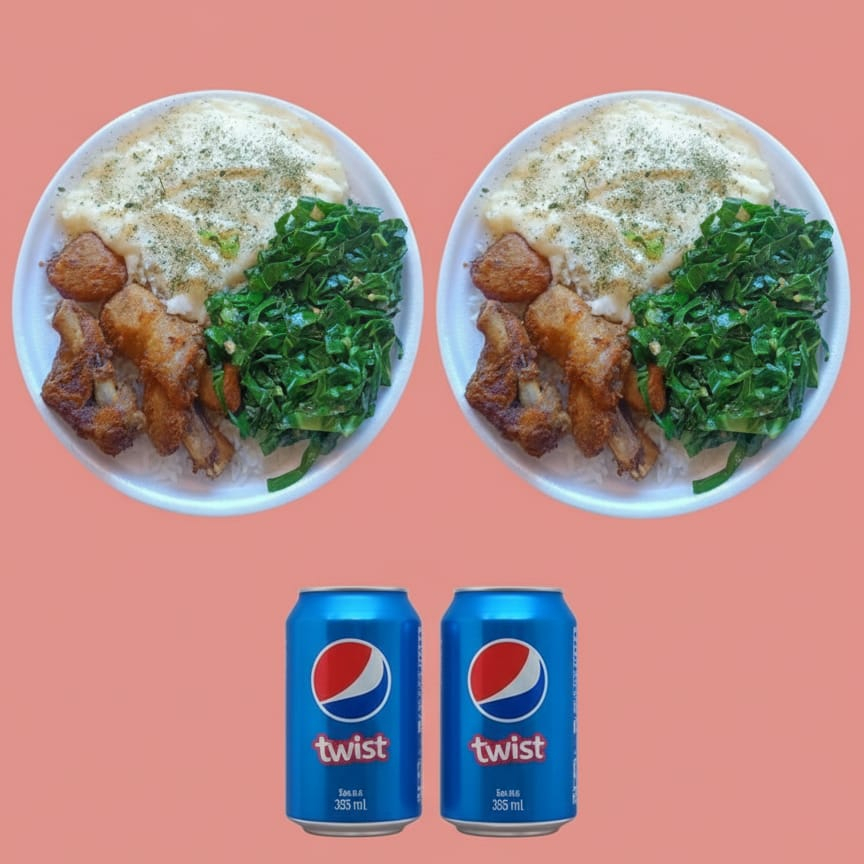 Leve a refeição perfeita e completa para duas pessoas com um desconto imperdível! Você recebe: Duas marmitas individuais de FEIJOADA COMPLETA + Duas Pepsi Twist geladinhas