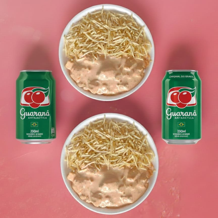 Você leva 2 Marmitex de Strogonoff de frango + batata palha + 2 Guaranás Antarctica! Deixe a fome de lado com essa combinação imbatível e economize muito: