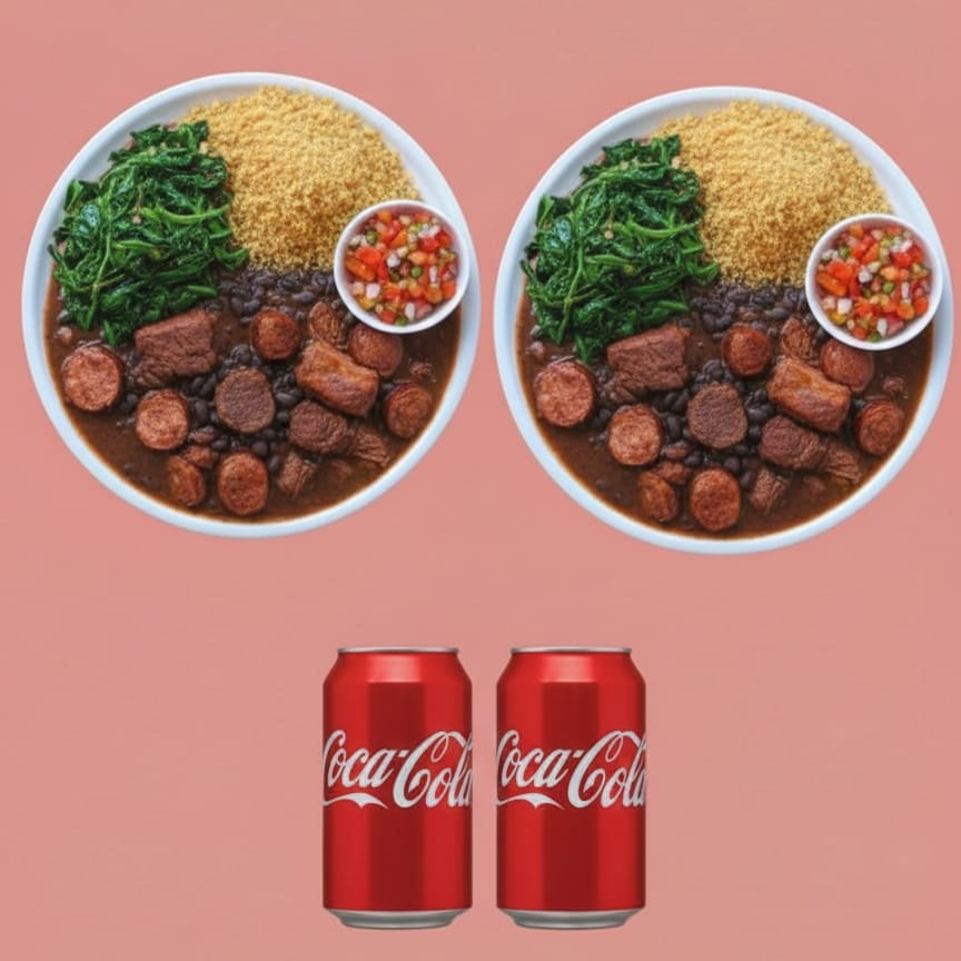 É o combo perfeito para quem ama o tempero brasileiro! Aquele feijão pretinho, carne suculenta e os acompanhamentos que não podem faltar... Tudo isso acompanhado daquele estouro de sabor da Coca-Cola! Não perca! Chame a família, os amigos e garanta o seu DUPLO SABOR AGORA!