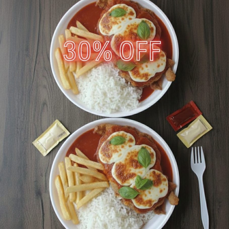 Dobro da Sabor, Dobro da Emoção! 🚀 Duas Parmegianas Irresistíveis + Batata Palha Crocante + Duas Coca-Cola Gelada. A felicidade em dose dupla chegou (SEM FEIJAO)