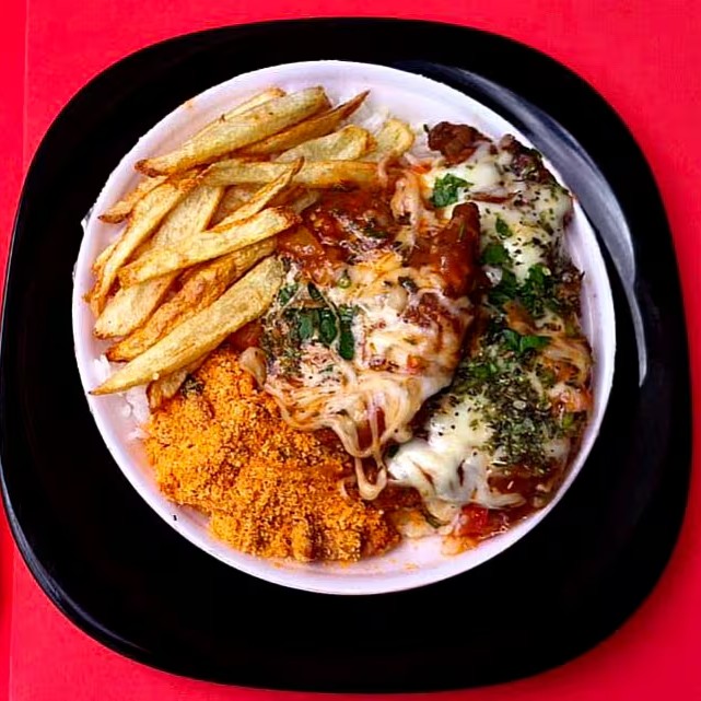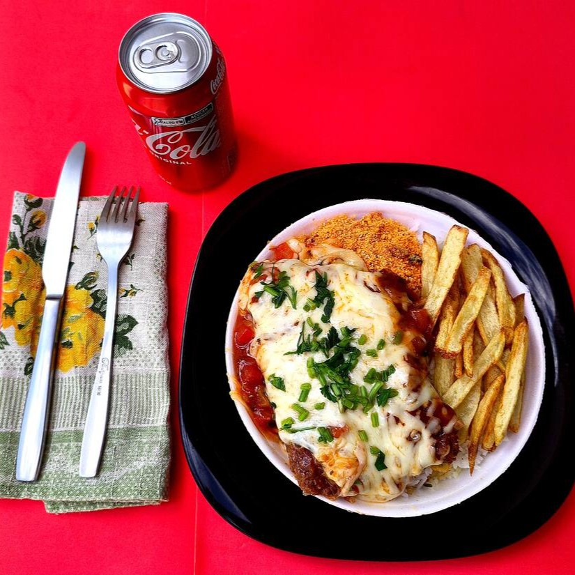 Clássico da culinária brasileira! Um suculento bife de carne bovina empanado, frito até ficar crocante e coberto com molho de tomate caseiro e uma generosa camada de queijo derretido. Gratinado até borbulhar, é servido quentinho e irresistível — perfeito para quem busca sabor e tradição em cada garfada.