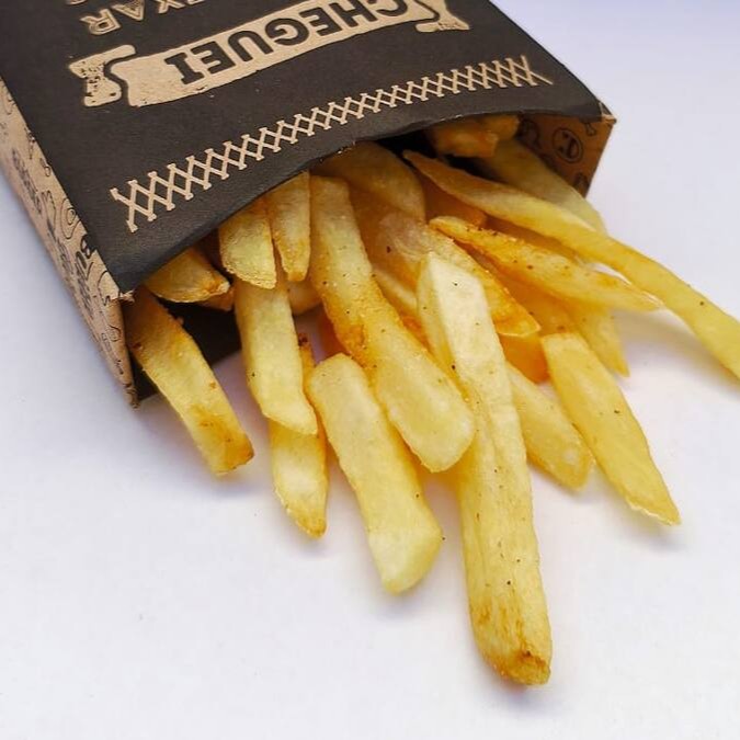 Acompanha fritas, onin e batata de carinha Tamanho pequena serve uma pessoa