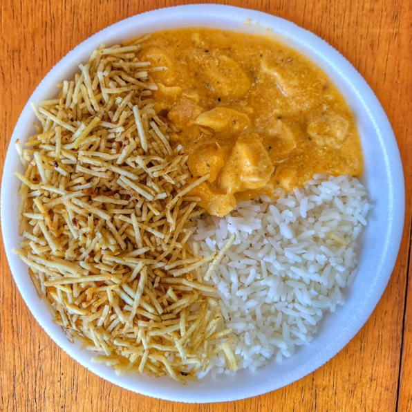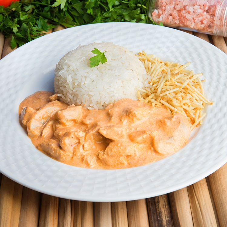 Arroz, Strogonoff De Frango e Batata Palha. Apróx de 300g á 500g.