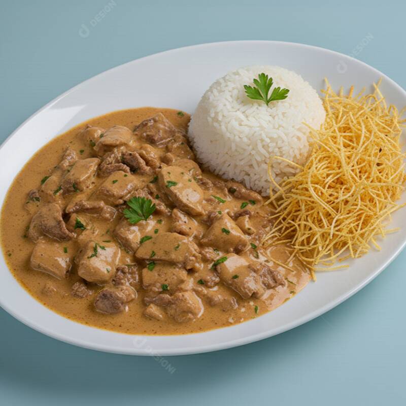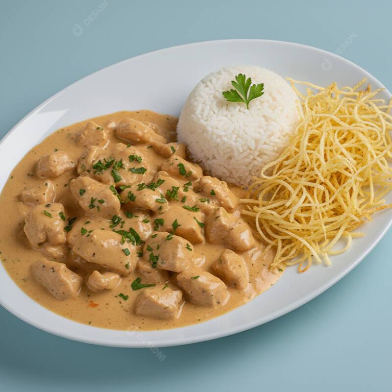Marmitex Strogonoff De Frango (400g) C Arroz E Batata Palha