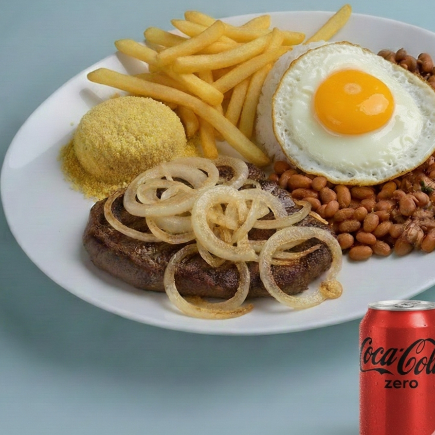 Bife Acebolado Grelhado C Ovo Frito (400g) + Coca Cola Zero Lata 350ml