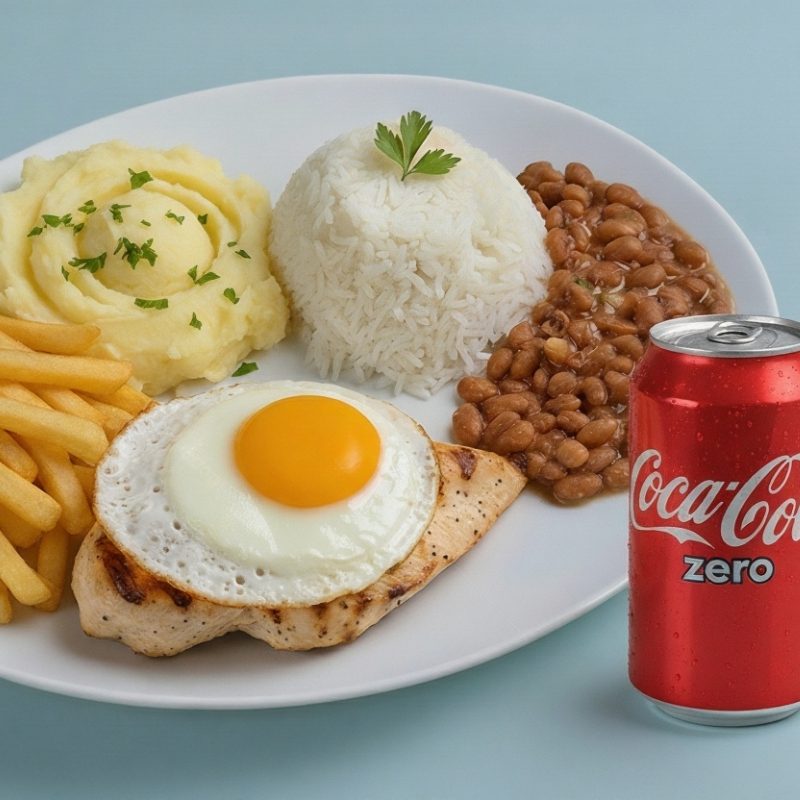 Filé De Frango Grelhado C Ovo Frito (400g) + Coca Cola Zero Lata 350ml