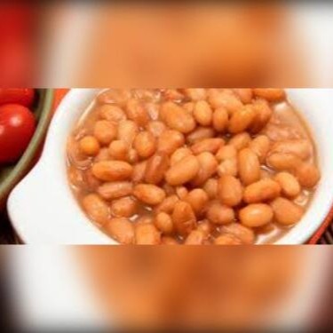 Dobradinha com calabresa e feijão branco. Porção com aproximadamente 400 gramas.