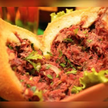 Acompanha: Hambúrguer, presunto, queijo, tomate, alface e cheddar.