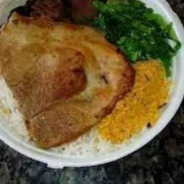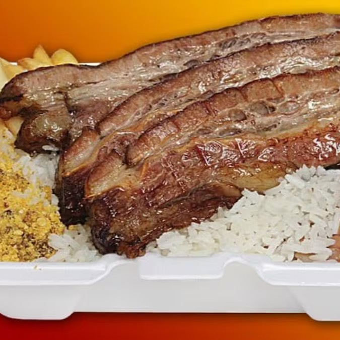 Marmitex G:bisteca Suína+ovo Frito+contra Filé Acebolado