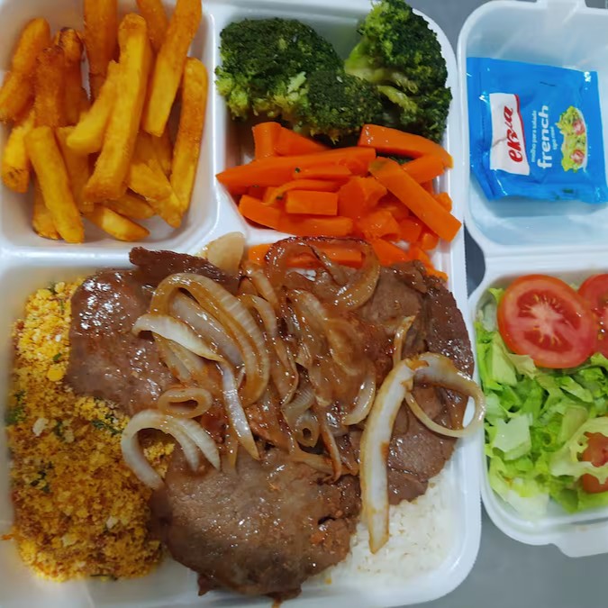 Filé De Frango Grelhado Com Contra Filé Acebolado (divisória) + Coca Cola 200 Ml